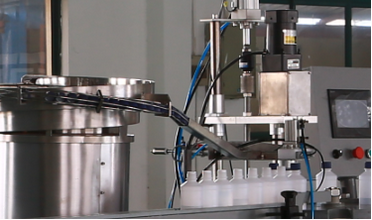 Sistema de clasificación, alimentación e tapado automático de tapas para tapóns de diferentes tamaños.